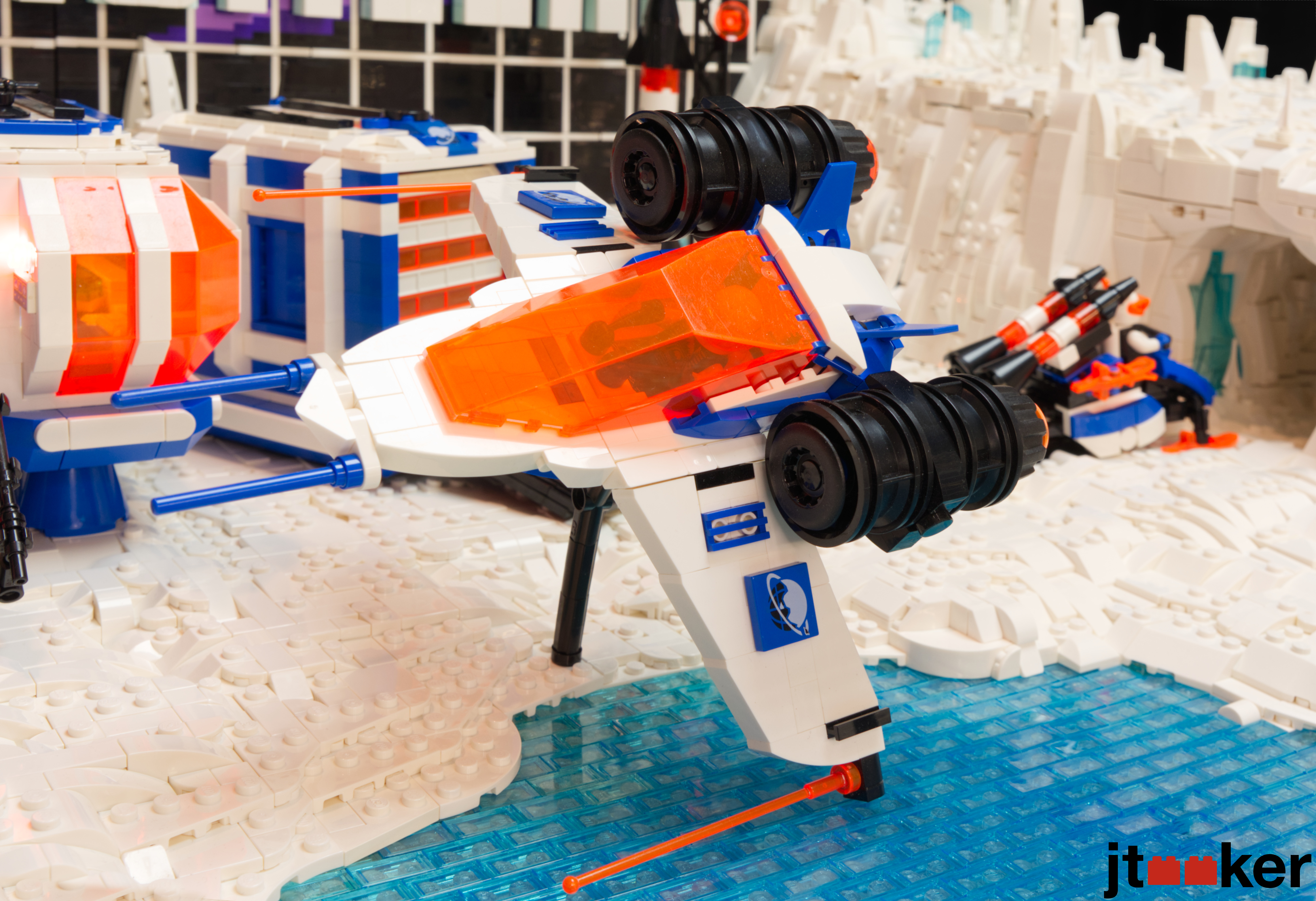 A crew of pioneers make a settlement on the Ice Planet. After landing their home base and garage, they built a helipad and set up communication stations. They launch rockets with satellites around the planet.